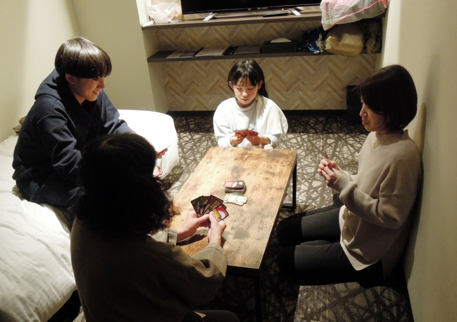 ホテルで婆ちゃんとウノしたよ。爺ちゃんは寝ちゃったの。