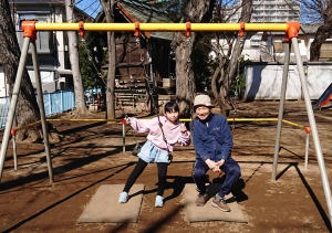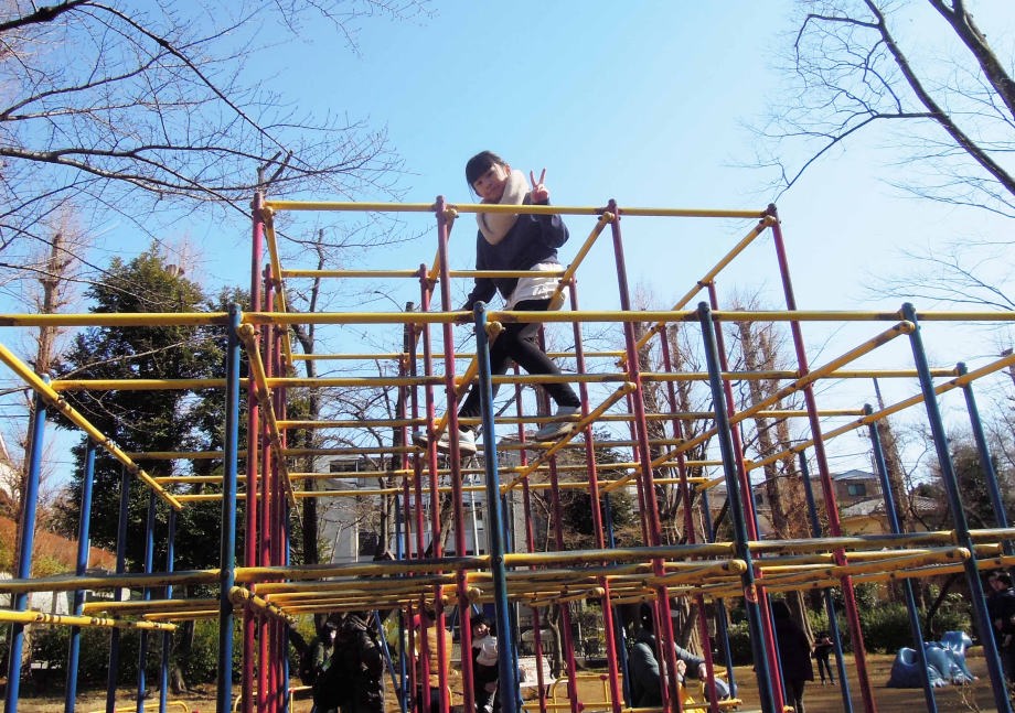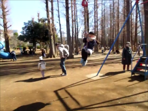 お昼に別所沼公園に行ったの。ターザンロープしたわ。 |