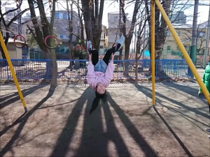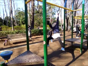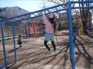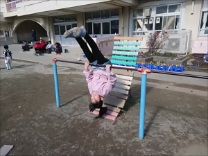 ハルちゃん、渡り吊り輪は得意よ。 |