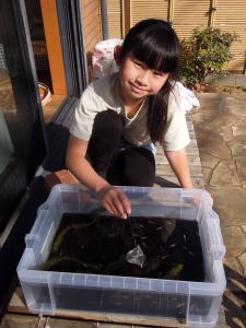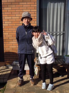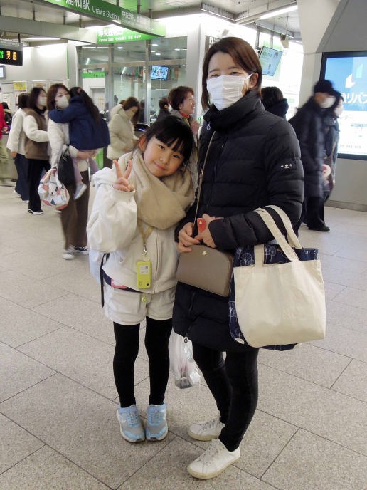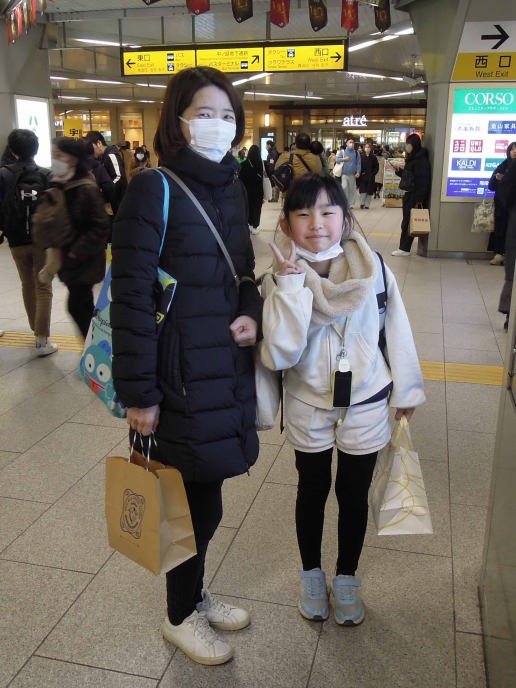 | 駅でママが待っててくれたわ。足元に下げてるビニール袋にメダカが入ってるの。爺ちゃん婆ちゃんバイバイまたね~。(メダカと金魚は元気でいるよ~) |