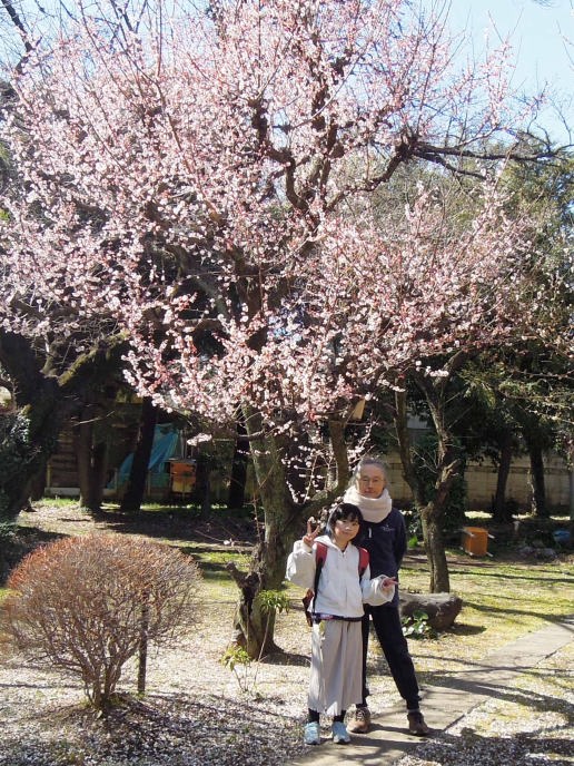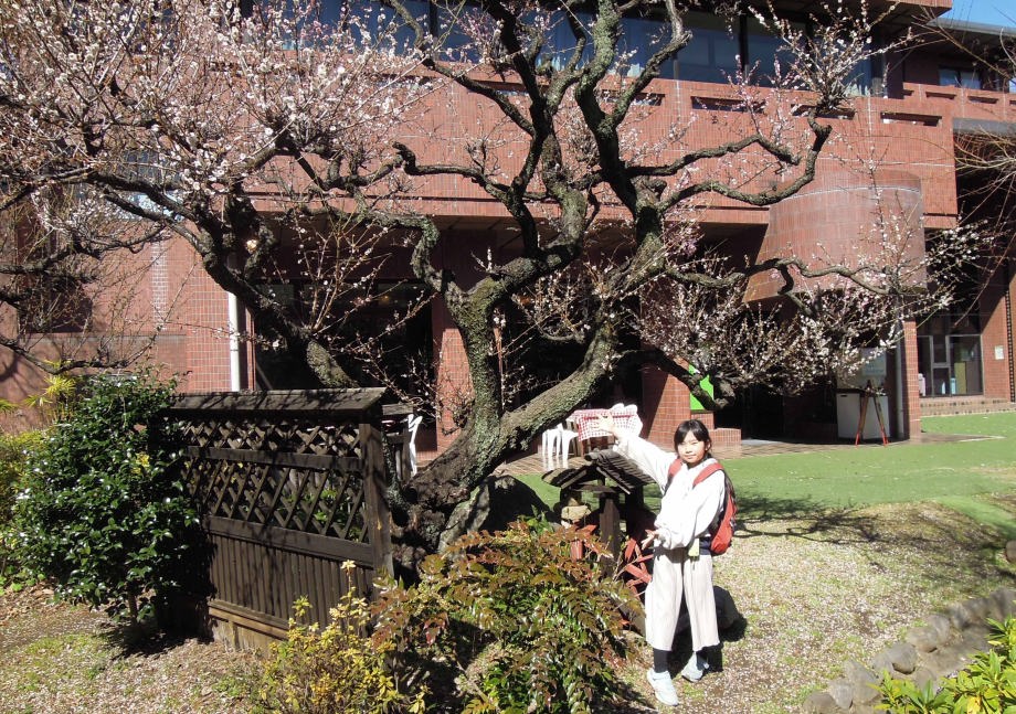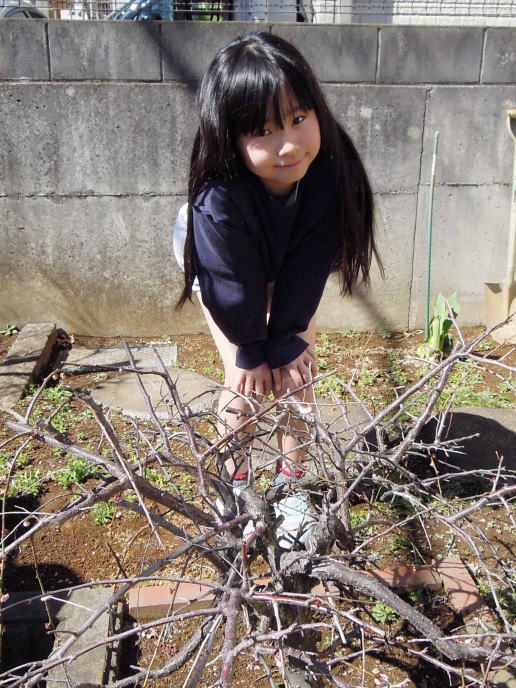 | ハルちゃんが産まれた時に植えた梅の木よ。花はもうしぼんじゃったの。 |