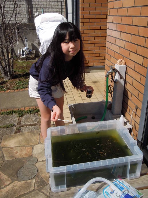 | 水を入れ替えてるの。爺ちゃんちは井戸があるから水替えは簡単よ。 |
