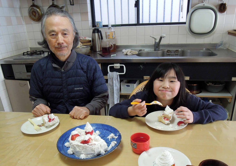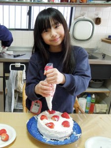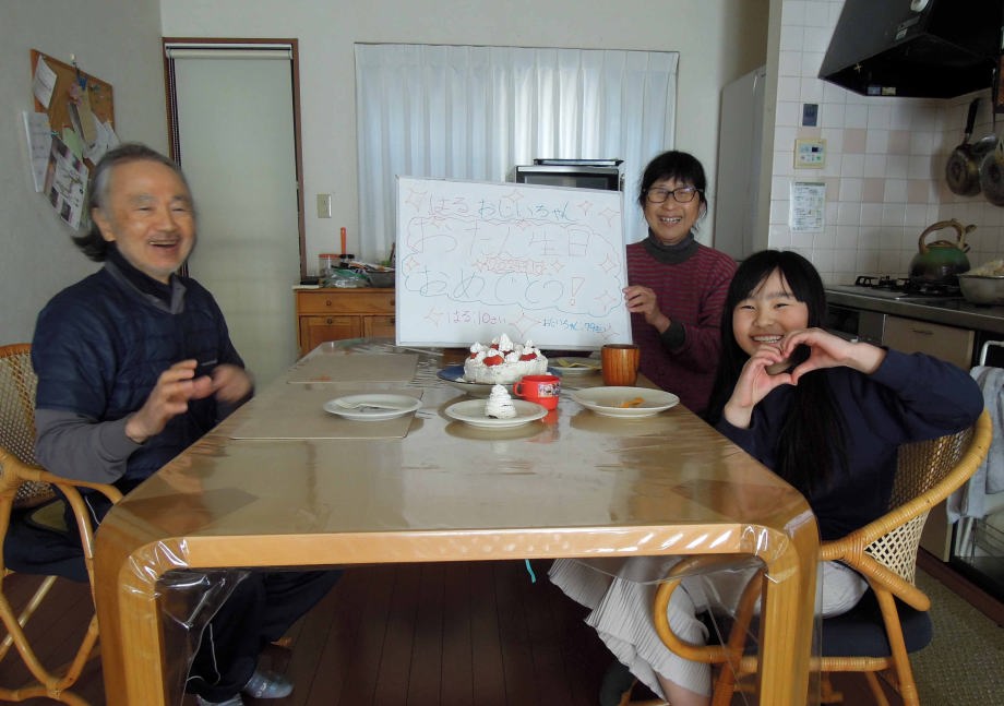 | 後ろの看板に「お誕生日おめでとう」って書いてあるの。 |