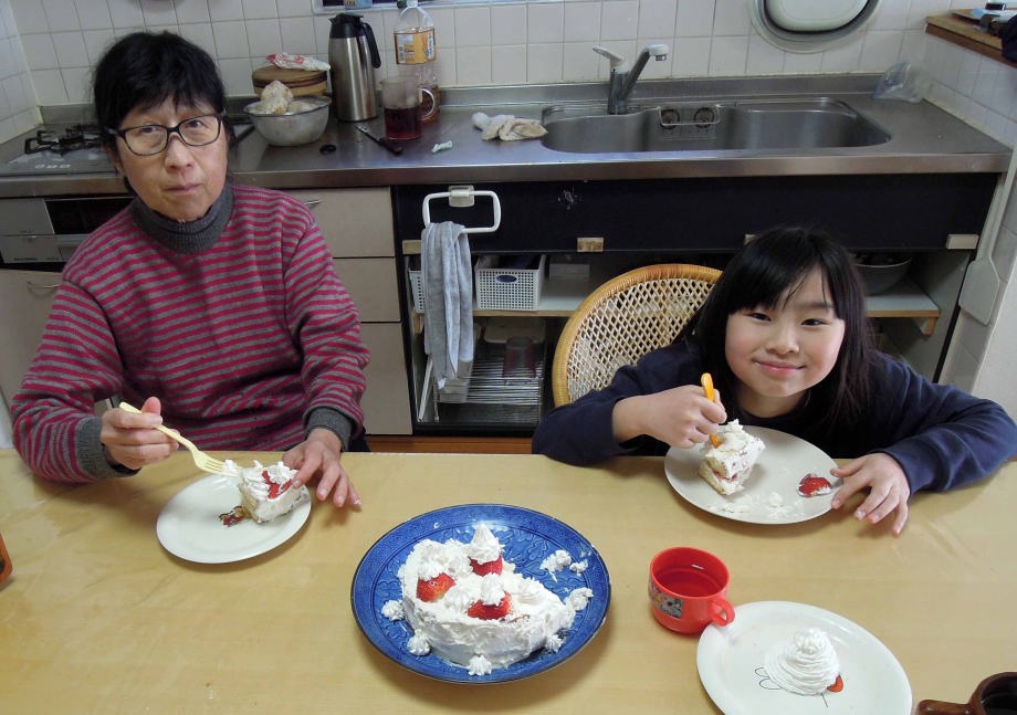 | 婆ちゃんに「アルプスの少女ハイジ」を読んで貰ってるの。続きはハルちゃんが自分で読むの。 |