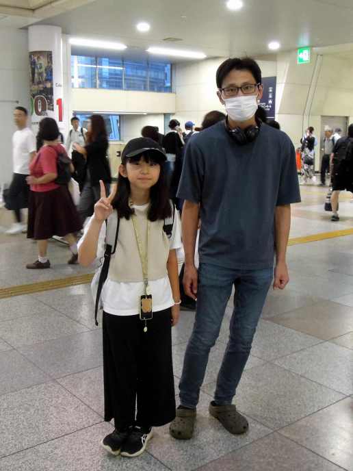 川崎駅でパパが待っててくれたの。爺ちゃん婆ちゃんバイバイまたね~。