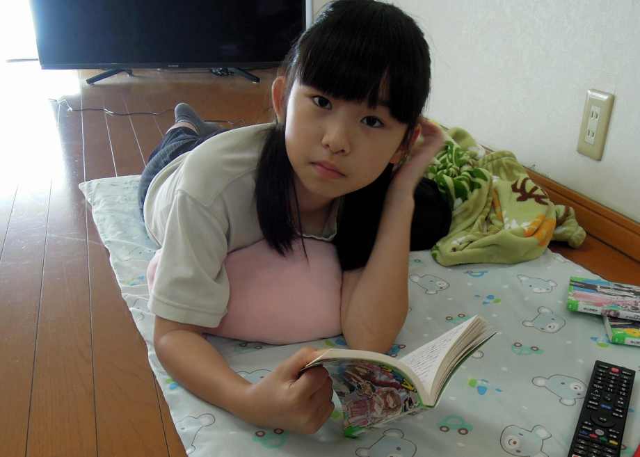 | 持ってきた小説を読んでるの。マンガはもう卒業したわ。 |