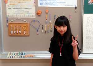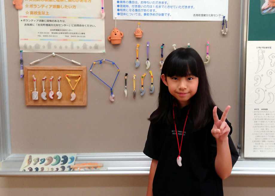 | 紐を通してネックレスにしたの。これで厄除け(やくよけ)とお祓い(はらい)は完璧よ。 |