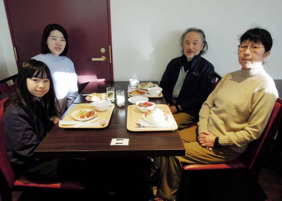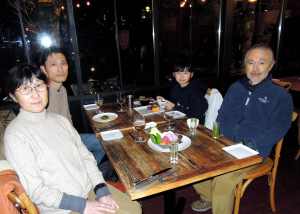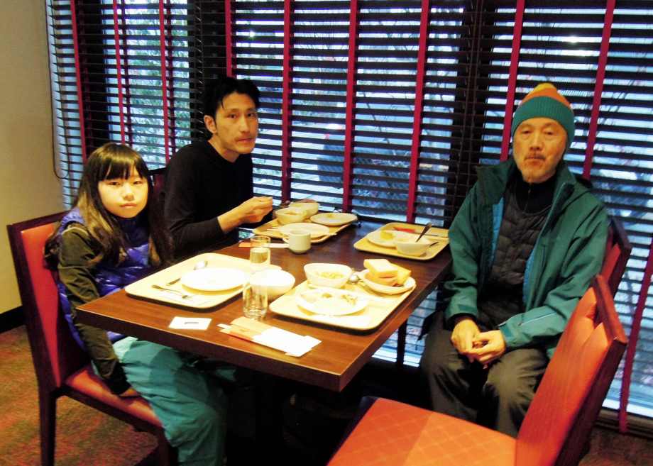 | 晩ご飯は外のレストランで食べたわ。爺ちゃんはホテルで寝てたの。 |