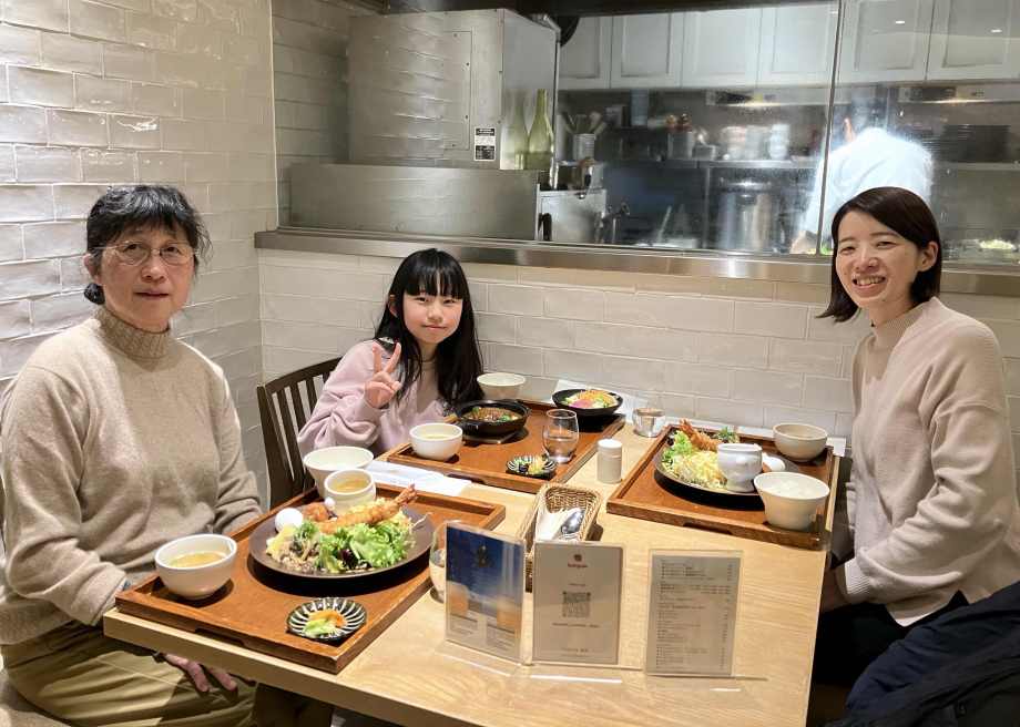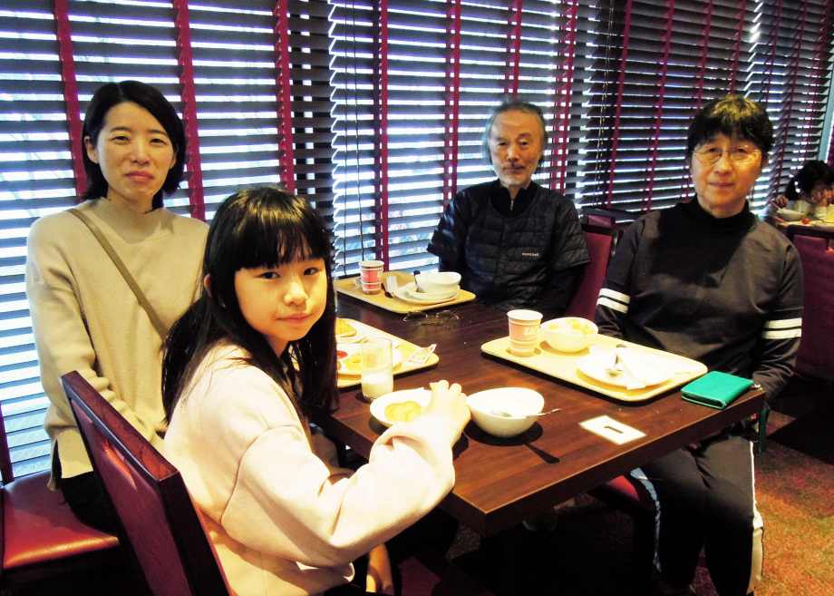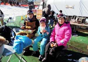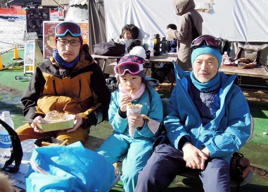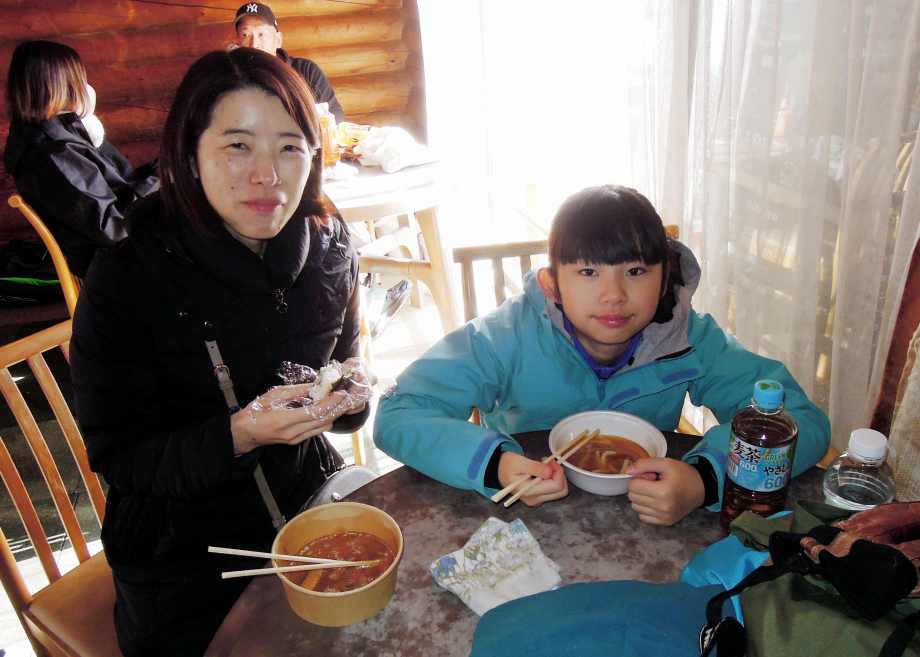 | ママとお昼ご飯を食べたの。食べてからまた滑ったわ。 |