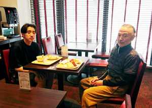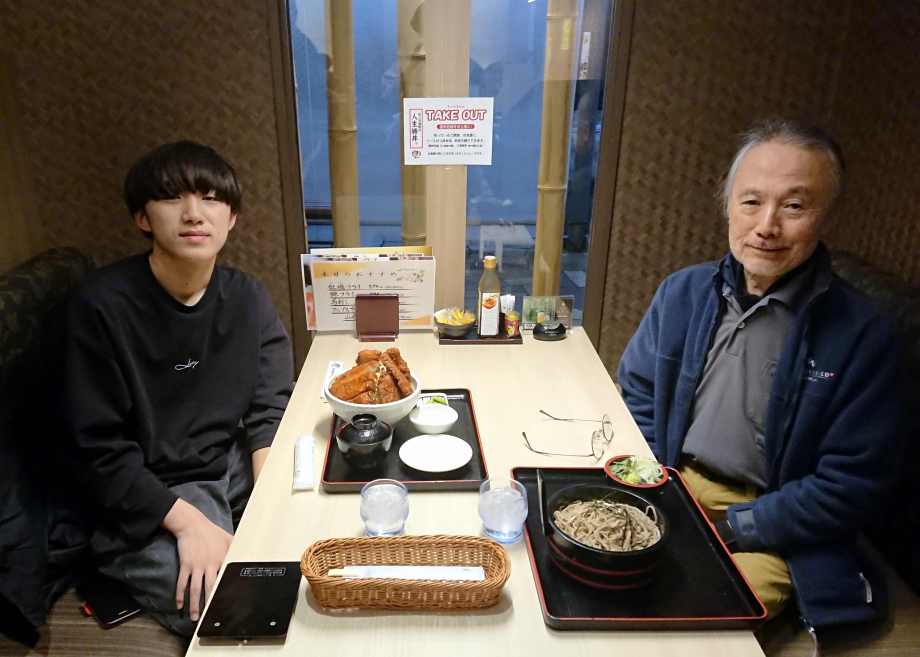 滑り終わって駅のレストランで夕食を食べたよ。