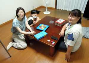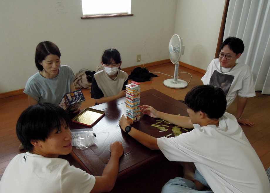 食事が終わって積み木ゲームをしたわ。 |