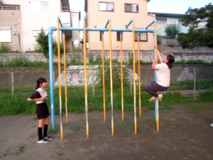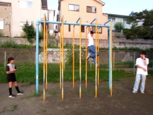 凌ちゃんは消防士を目指してるから登り棒が得意よ。 |